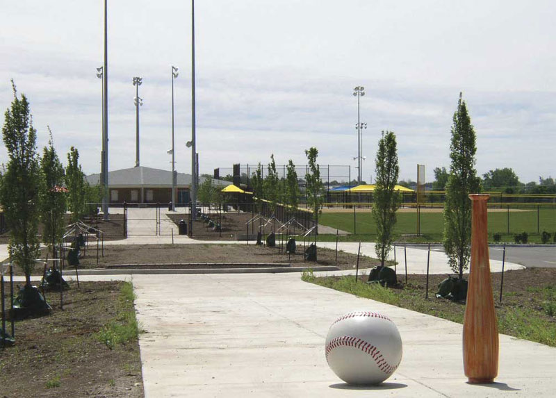 A softball quadplex facility equipped with regulation fields, fencing, lights, scoreboards, with centrally located restrooms and a concession building. In addition, irrigation systems, parking lots, and shading structures were added. All areas were professionally landscaped and decorated to make it an eye-catching ballpark on which everyone is proud to play a game of softball.