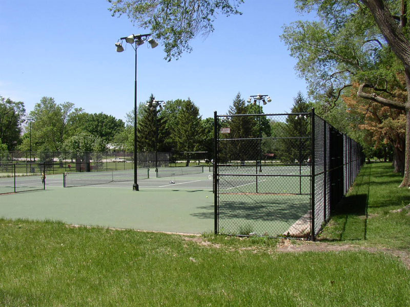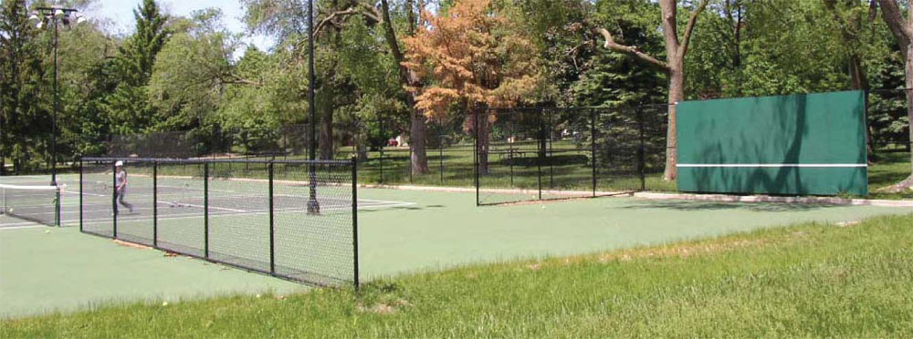 An outdoor tennis facility including, four new courts with additional practice areas for individuals to work on their games without requiring a playing partner. The fencing and courts were designed to provide a longer structural lifespan, contributing to many memorable games for the public at large.